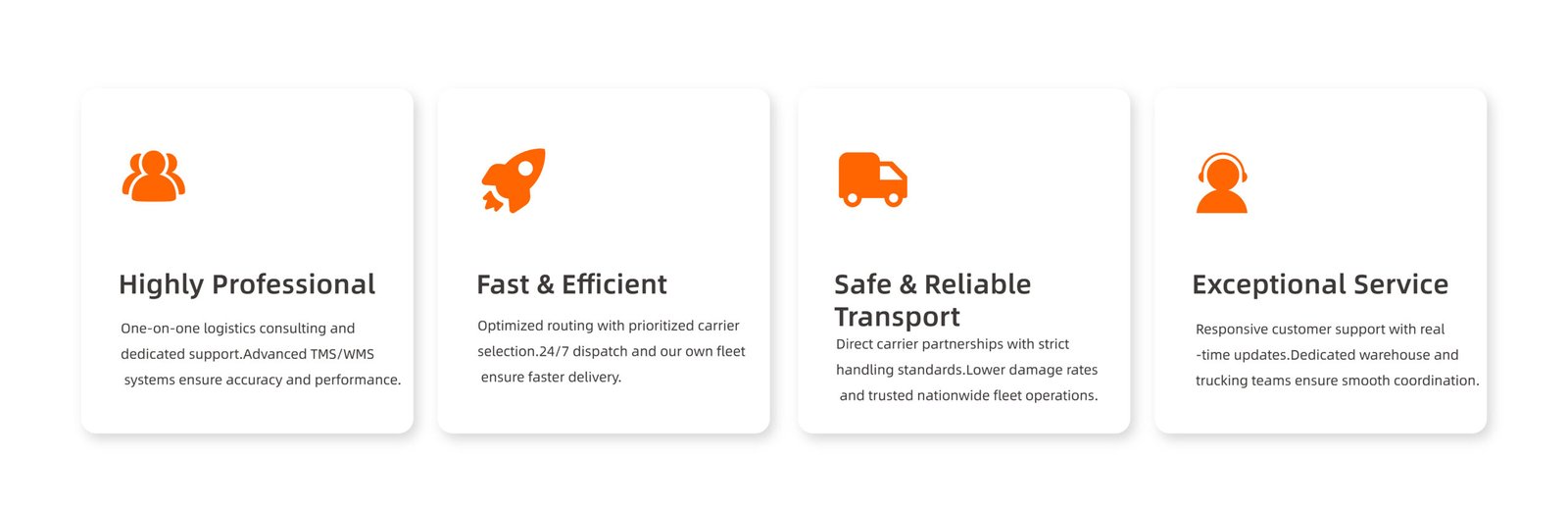 Trusted by sellers across the U.S. and Asia, we provide seamless logistics services including FBA first-leg shipping, domestic trucking, warehouse receiving, relabeling, sorting, repacking, last-mile delivery, and nationwide D2C fulfillment.